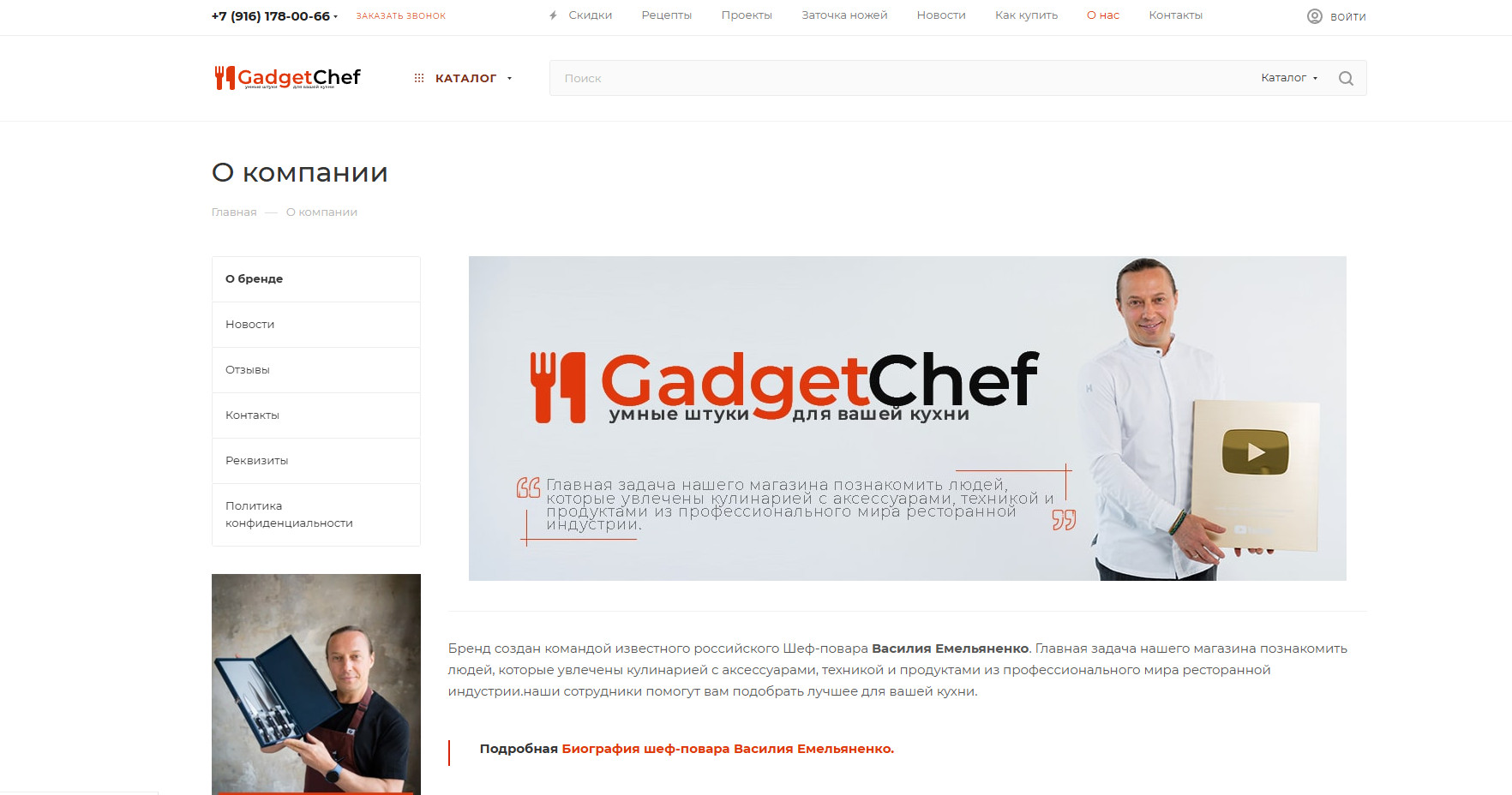 Для нашего заказчика Шеф-повара ВАСИЛИЯ ЕМЕЛЬЯНЕНКО необходимо было создать интернет магазин где люди которые увлечены кулинарией с аксессуарами, техникой и продуктами из профессионального мира ресторанной индустрии. Workshop Zet10.ru был разработан интернет-магазин с использованием 1С-Битрикс и Шаблон Аспро.