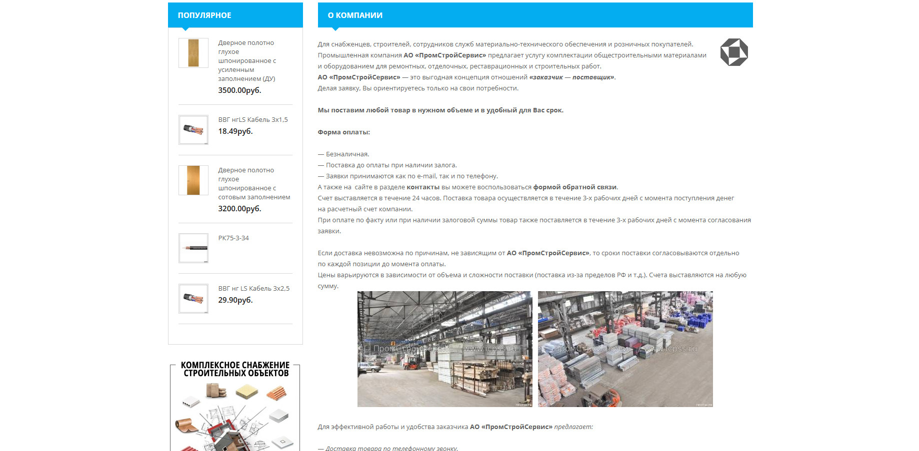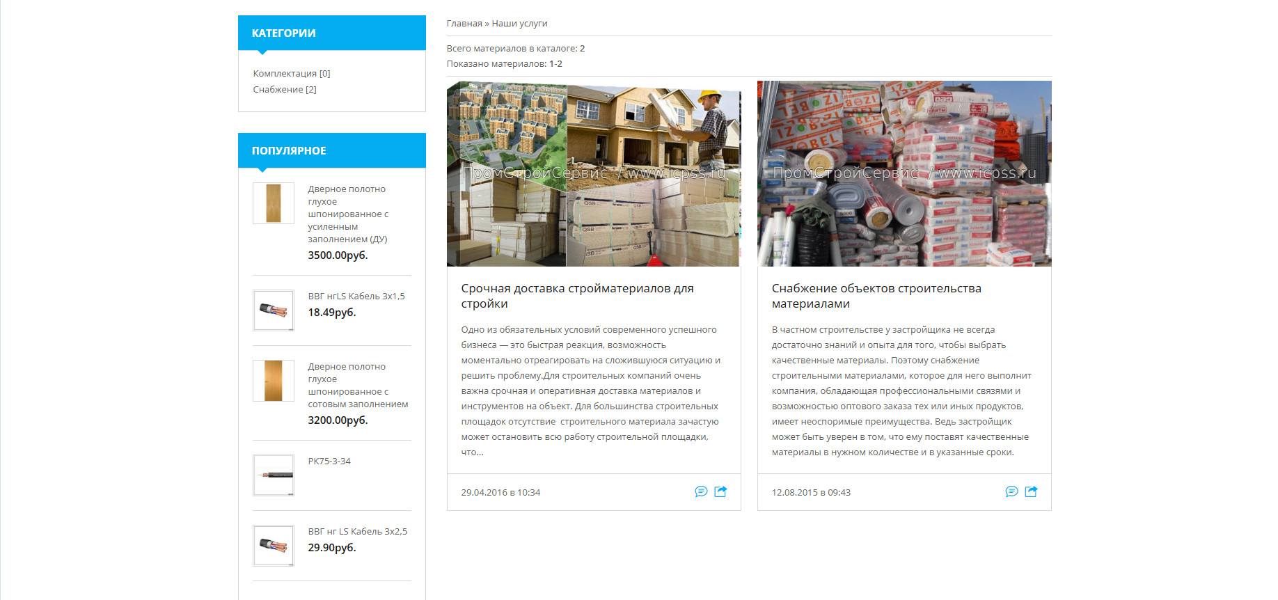 - Интернет-витрина с полным каталогом строительных материалов