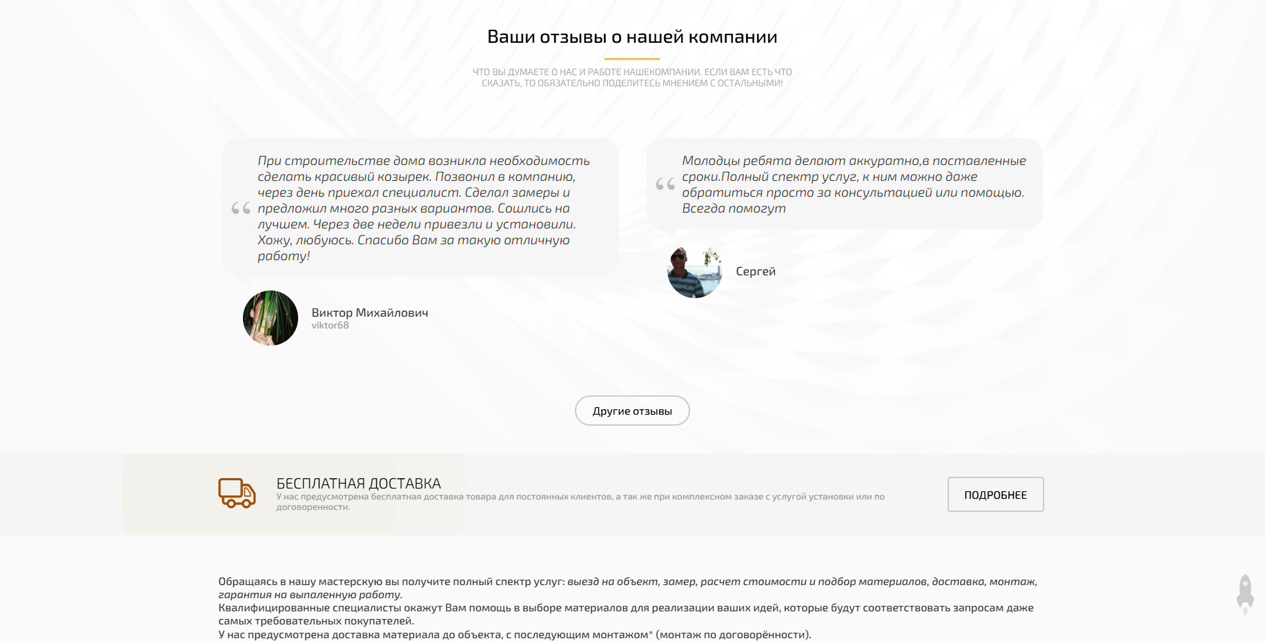 - Раздел с примерами работ на заказ