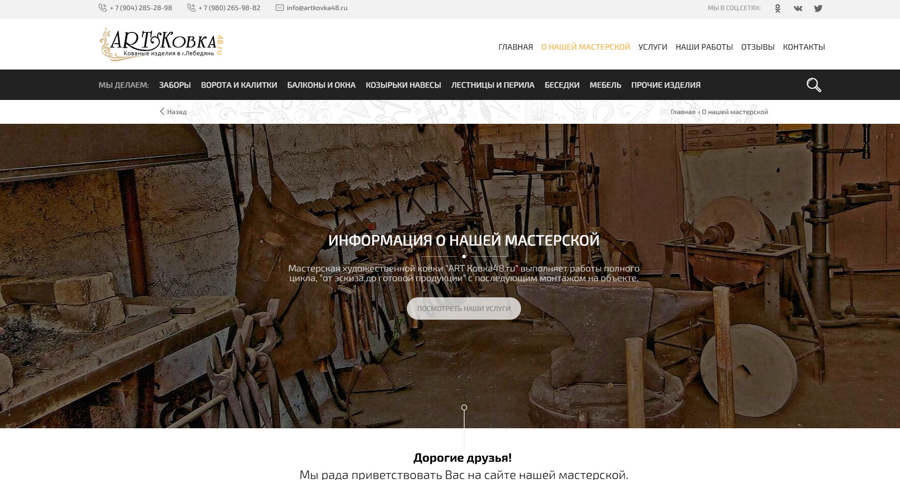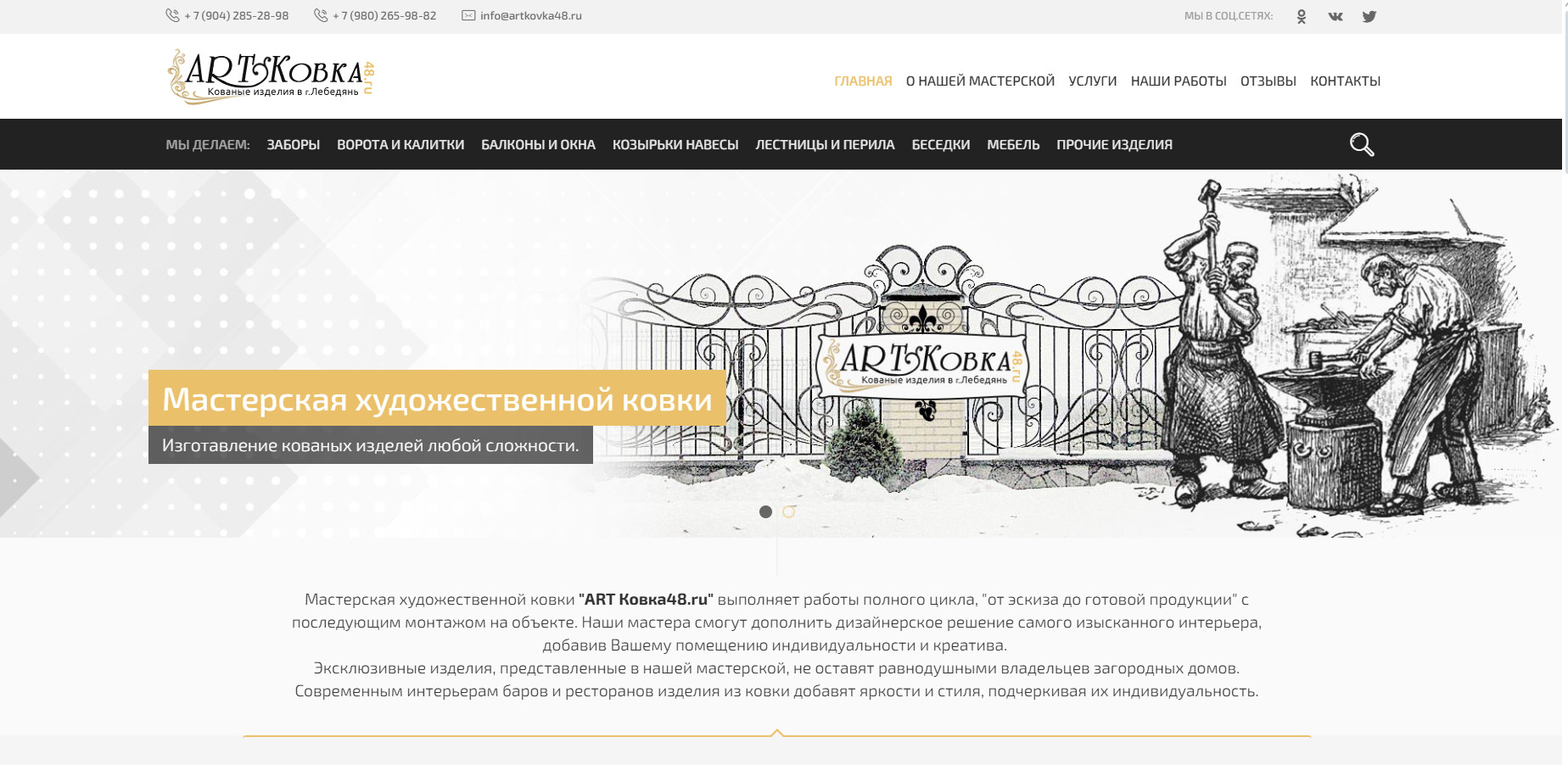 Студия Workshop Zet10ru разработала современный корпоративный сайт для мастерской художественной ковки «ART Ковка48». Основной задачей стало создание цифрового пространства, которое бы отражало уникальность ручной работы и профессионализм мастеров компании.